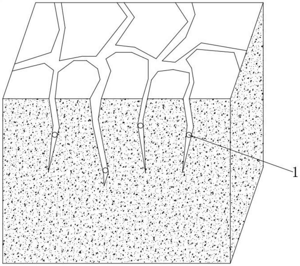 | 详情介绍: 本发明公开了一种干旱地区的板结土壤开裂治理方法,属于土壤治理技术领域,本发明可以通过沿开裂处投放自解体修复球,然后在自解体修复球接触到水分后触发修复动作,利用自解体修复球上的吸水纤维吸收水分,分解半球接触到水分后迅速发生反应释放出大量的气体以及热量,气体用于沿着吸水纤维的路径促进修复套解体向土壤内释放出有机修复剂,而热量则通过固定半球对锁定柱进行加热迫使其熔化,失去锁定柱的束缚作用后控制磁环迅速下移,隔离膜自主展开对裂缝处进行封堵,一方面迫使分解半球释放出的气体可以携带有机修复剂充分在土壤内进行分散和修复,另一方面尽量减少外界高温对裂缝内的干扰,导致水分蒸发过快,从而提高对土壤的治理效果。 |