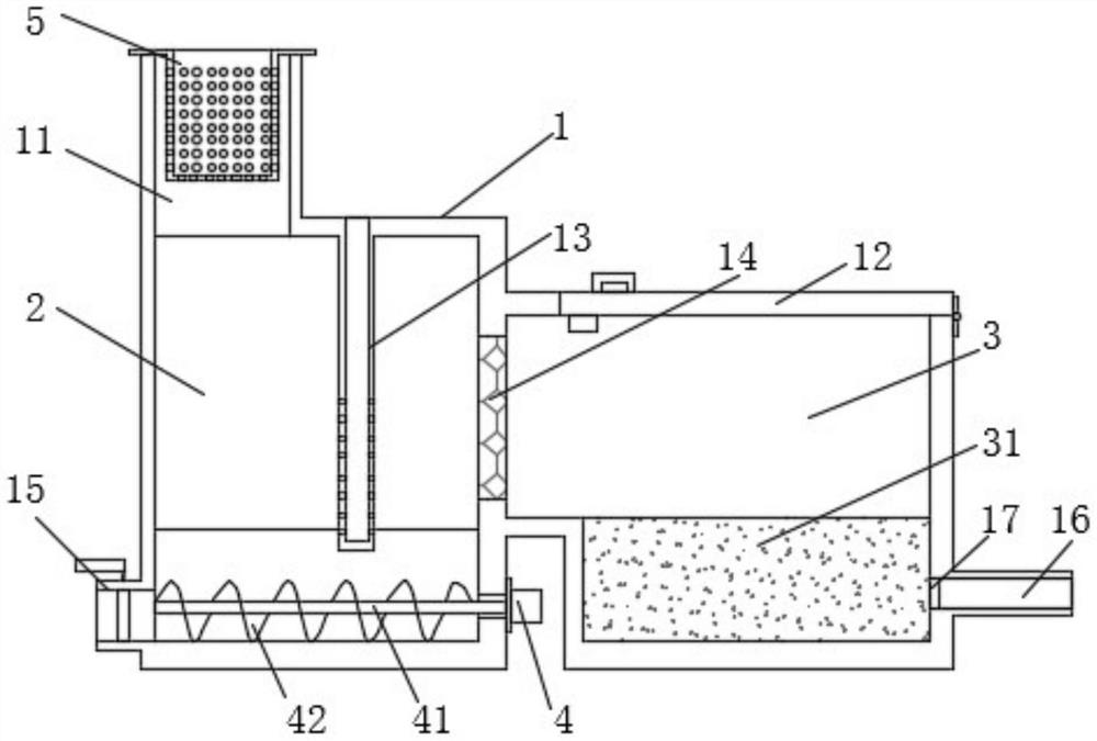 | 详情介绍: 本实用新型公开了一种环保工业污水处理装置,包括装置本体,装置本体的内部设有沉淀腔与吸附腔,装置本体的上端设置有搁置口,搁置口的内侧插接有过滤框,沉淀腔与吸附腔之间设置有陶瓷膜。污水处理装置,通过过滤框初步过滤、沉淀腔物质沉淀、陶瓷膜进行过滤、活性炭颗粒进行吸附多重处理手段,能够有效提高污水处理的质量;且通过电机带动驱动杆及螺旋输送桨转动即可将沉淀腔内沉淀物从排污阀排出方便了沉淀池低的清理。 |